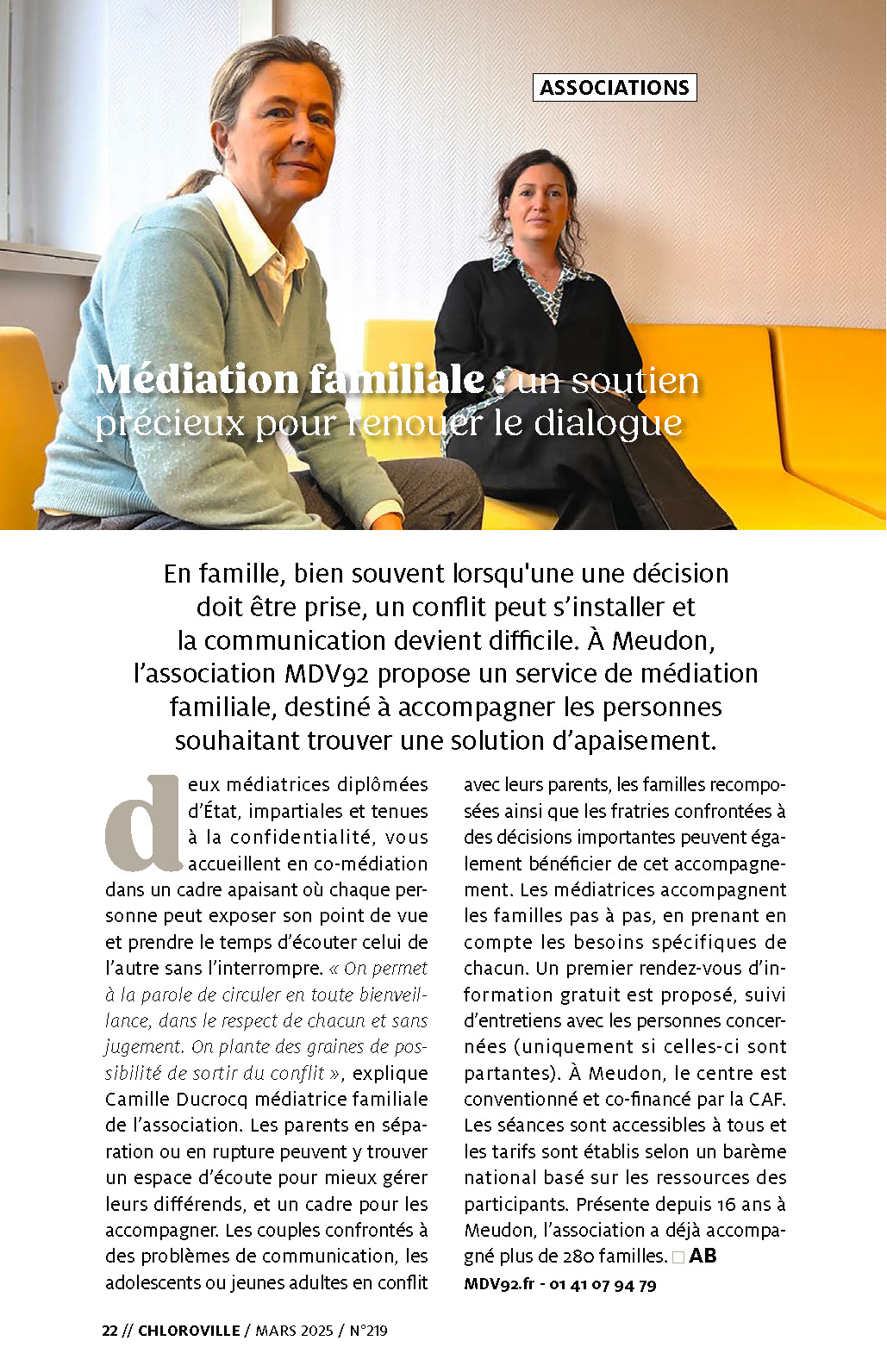 La médiation familiale permet de rétablir la communication, le dialogue, entre les membres d’une famille et de trouver vos solutions adaptées à votre famille.